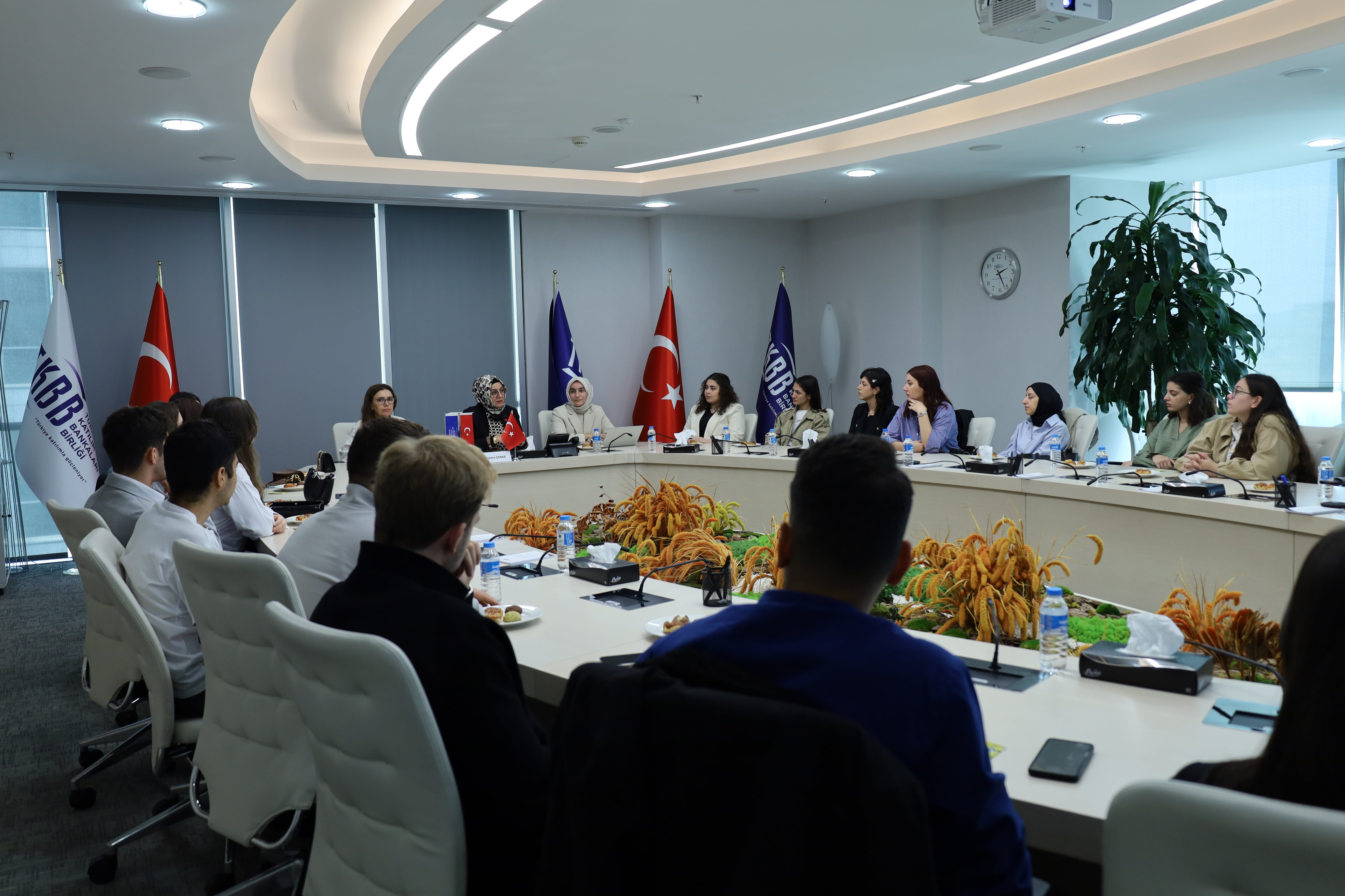 Danışman hocaları Prof. Dr. Esra Yüksel Acı eşliğinde gerçekleştirilen programda TKBB Genel Sekreter Yardımcısı Fatma Çınar, “Katılım Bankalarımızın Sektör Görünümü ve Sürdürülebilirlik Faaliyetleri” başlıklı sunumuyla katılım bankacılığının sektördeki güncel görünümünü, finansal kapsayıcılığa sağladığı katkıları ve sürdürülebilirlik vizyonunu paylaştı. Çınar ayrıca çevresel, sosyal ve yönetişim (ESG) ekseninde geliştirilen uygulamaların, katılım finansın reel ekonomiyle bütünleşen ve toplumsal faydayı önceleyen yapısındaki önemine dikkat çekti.